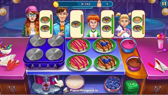 - A mix of all Papa’s-style games: pancakes, pizza, ribs, ice cream, and more.