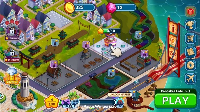 - Hundreds of levels: each restaurant has dozens of stages with star ratings.
